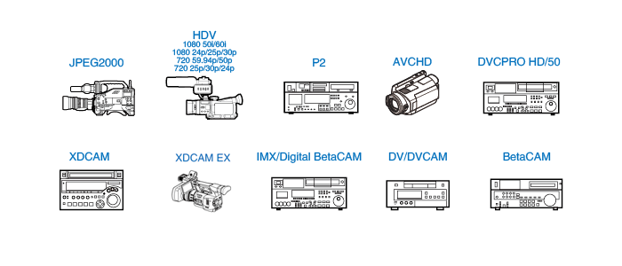 EDIUS NX(帶HD擴展選件)除了對傳統的標清格式如:DVCPRO 50、DVCPRO(輸入)、DVCAM、DV提供了很好的支持外,還對主流及新興的高清格式如:DVCPRO HD、XDCAM、P2、AVCHD、HDV等提供了全面的支持。這樣EDIUS NX(帶HD擴展選件)可以與多種高/標前期設備連接,組成完備的高/標清編輯解決方案。
