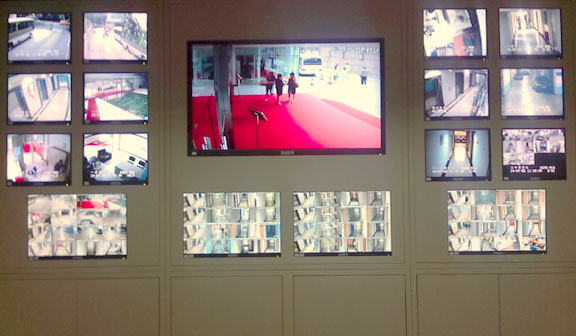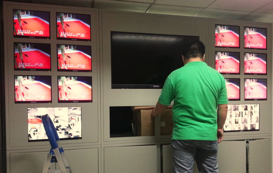 5.更換電視墻,監視器全部更換為新型高清晰度的液晶監視器,即美觀又降低了功耗,通過矩陣控制分布的各監控點,在監視器上顯示現場的視頻圖像,供保安人員進行圖像監視。