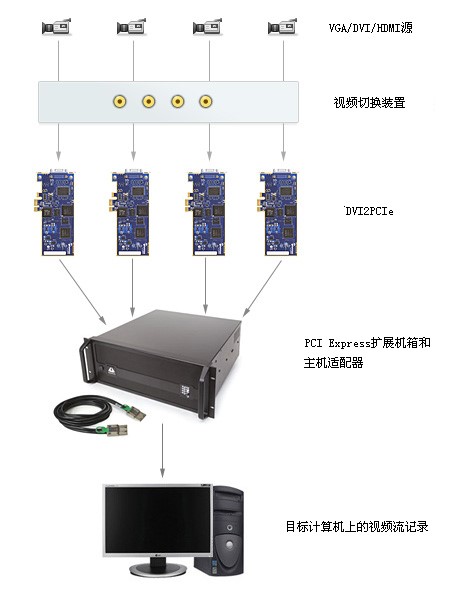 DVI2PCIe支持一機(jī)多卡,能從一臺(tái)機(jī)器同時(shí)采集多個(gè)信號(hào)源。 PCI Express擴(kuò)展機(jī)箱與PCI Express主機(jī)適配器相連接,提供了大量的PCI插槽。將圖像采集卡插入這些插槽中,在啟動(dòng)與DVI2PCIe卡數(shù)量對(duì)應(yīng)的Epiphan捕捉工具應(yīng)用的多個(gè)部分后,它便可以進(jìn)行記錄。 DVI2PCIe卡為收集、保存視頻,同時(shí)保持較高的視頻質(zhì)量提供了可靠的手段。