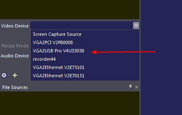 點擊Video Device附近的下箭頭,選擇下拉列表中連接到你電腦的幀采集器。