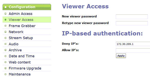 Access查看器的訪問界面設置觀眾廣播的指定密碼權限。