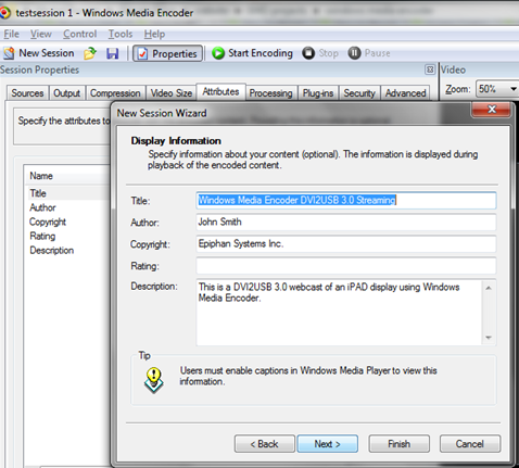 步驟1: 連接Epiphan抓幀器設備并啟動Windows Media Encoder。