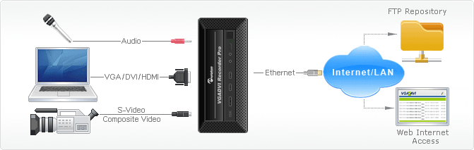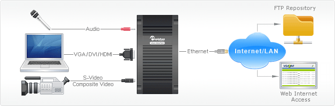 錄制設(shè)備或系統(tǒng)接收顯示源后編碼,并用不同的比特率和編碼選項(xiàng)記錄在本地存儲(chǔ)為AVI或MOV文件。這些記錄可以從內(nèi)置WEB服務(wù)器中被找到或自動(dòng)推到網(wǎng)絡(luò)存儲(chǔ)位置。