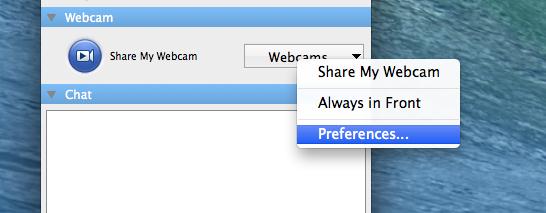 3. 從你GoToMeeting控制面板中攝像頭部分單擊“Webcams” 攝像頭按鈕,并選擇偏好設(shè)置。