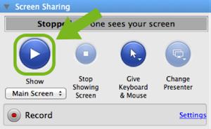 1. 點(diǎn)擊“Show”顯示按鈕開(kāi)始與您的與會(huì)者共享您的屏幕。