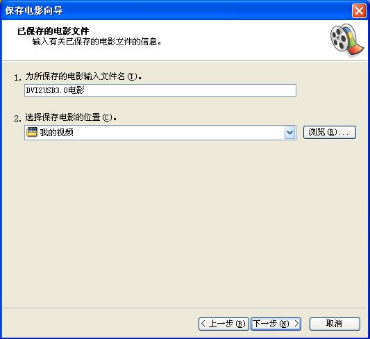 12.  輸入保存電影的文件名及存儲的位置后點擊下一步。