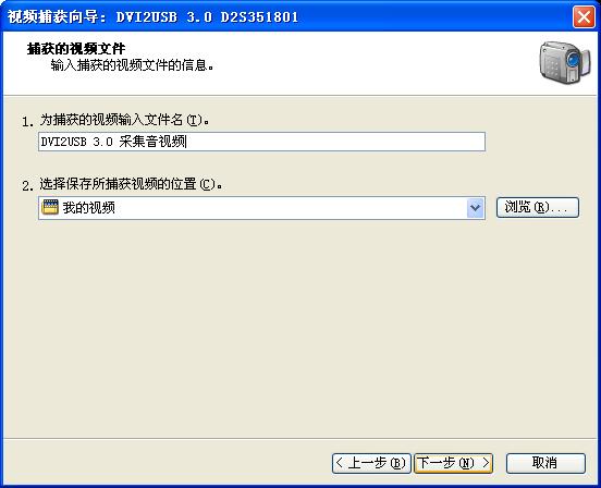5.    輸入捕獲視頻的文件名及選擇保存位置后點擊下一步。