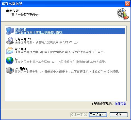 11.  當制作完成后,點擊文件菜單中的“保存電影……”,出現(xiàn)下列窗口,選擇您想要保存的方式,點擊下一步。