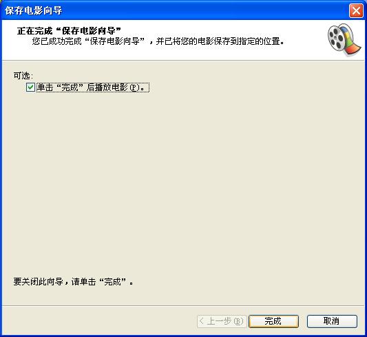 15.  完成保存影片后,您可勾選“單擊“完成”后播放電影(P)?!笨烧{用系統(tǒng)中的播放軟件來播放影片。
