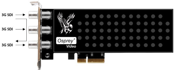 Osprey Raptor 935具有三個3Gb / s的SDI輸入接口。 端口可以使用標清,高清和3G。 所有9xx Raptor卡可以捕捉高達60fps。 每個SDI內嵌16個音頻通道(8個立體聲通道),在所有輸入之間共有多達48個組合音頻通道。 輸入C可編程為輸入或作為來自輸入A的環路輸出。.