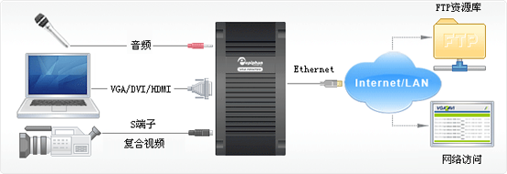 若想用一種全新的解決方案,也可采用Epiphan的便攜式采集系統(tǒng)VGADVIRecorder,此設(shè)備可以同時支持一個VGA/DVI/HDMI信號和AV復(fù)合或S端子信號,并且本身帶有32G存儲,還可進(jìn)行網(wǎng)絡(luò)的傳輸。