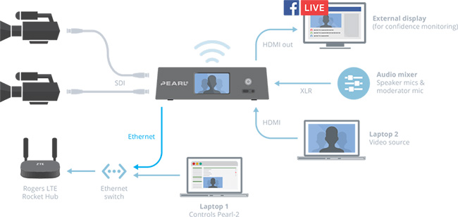 通過支持各種視頻輸入,Pearl-2輕松接入了Anil的多臺攝像頭。 更好的是,Anil可以創(chuàng)建自定義的多機位布局,并使用Pearl-2的實時切換功能在布局之間進行實時流式傳輸。 結果是一個高度動態(tài)的Facebook直播 – 這正是Spoke俱樂部想要的。